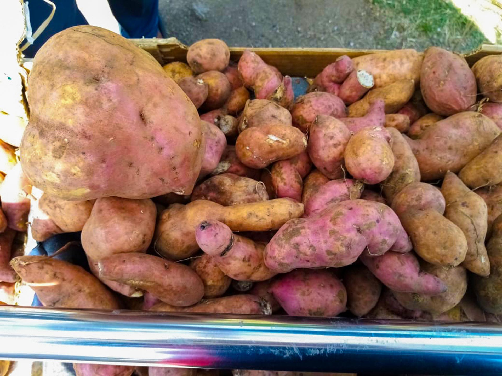 Our diet lacked variety because of Rodrigues’ colonial past. Wild food was wiped out by cash crop plantations. Our diet had to be supplemented with  imported foods. Other kinds of food were available at the market but were inconvenient to buy. The only crop that grew abundantly was the white  sweet potato. On an island where drought is common, the little water available is kept for human consumption. Agriculture has to rely on crops that need fewer inputs, like the patata. For centuries, these tubers have been the best allies of our farmers.